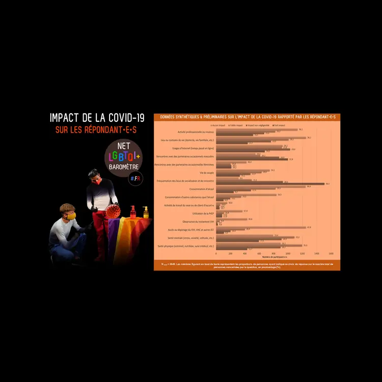 La revue systématique de la littérature la plus récente à propos de l’impact de la pandémie de COVID-19 sur les minorités sexuelles et de genre (0) conclut que ces personnes en souffrent plus que leurs pairs cisgenres hétérosexuels. QUE SAVONS-NOUS DE L'IMPACT DE LA COVID-19 DANS LES COMMUNAUTÉS LGBTQI+ ?